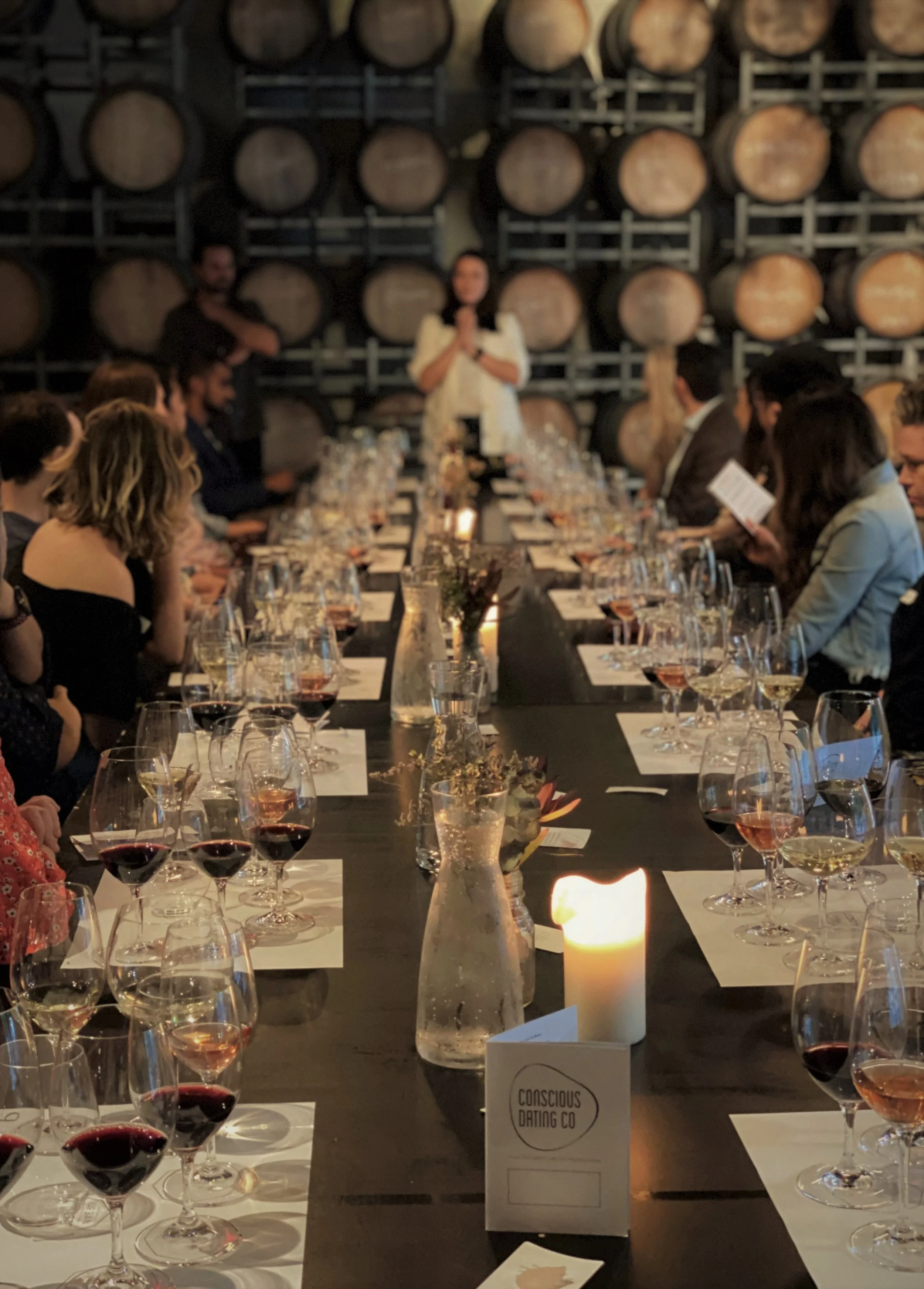 Conscious Dating nights kick off with a group activity (wine tasting, laughter yoga, music meditation, freestyle painting, life-drawing, etc) designed to shake off any nerves and kick-start the fun, before attendees split off into groups of two and rotate around, getting to know each other.